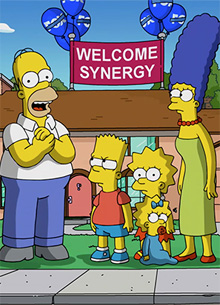Презентация сопровождалась демонстрацией сцены, запечатлевшей семейство Симпсонов рядом с плакатом, на котором было написано: "Добро пожаловать, Синергия". На заднем плане стояли Дарт Вейдер и глава компании Walt Disney Боб Айгер. Рядом, в мусорном контейнере, был виден портрет бывшего владельца компании Fox Руперта Мэрдока.