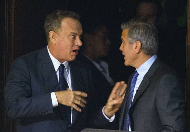 Джордж Клуни и Том Хэнкс были в прекрасном настроении, когда в понедельник приняли участие в благотворительном вечере SeriousFun Children's Network's, который в свое время организовал Пол Ньюман.