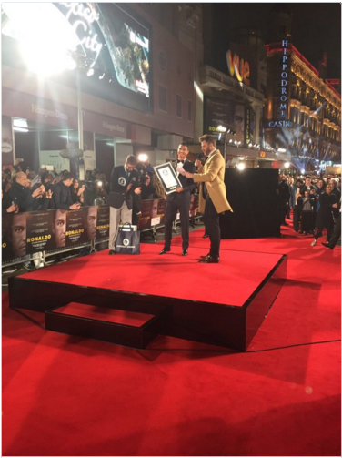 На лондонской премьере своего фильма Роналду получил грамоту самого популярного человека на Facebook.
